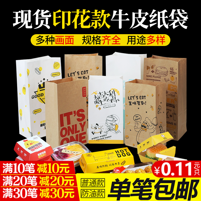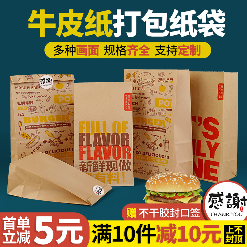 Kraft paper bag food packaging paper bag hamburger packaging paper bag disposable oil-proof paper bag delivery bag customized