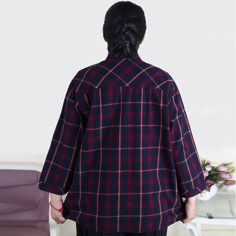 Guchen early summer cotton plaid shirt seven-point sleeve plus size 200 pounds fat mom middle-aged plus fat plus female