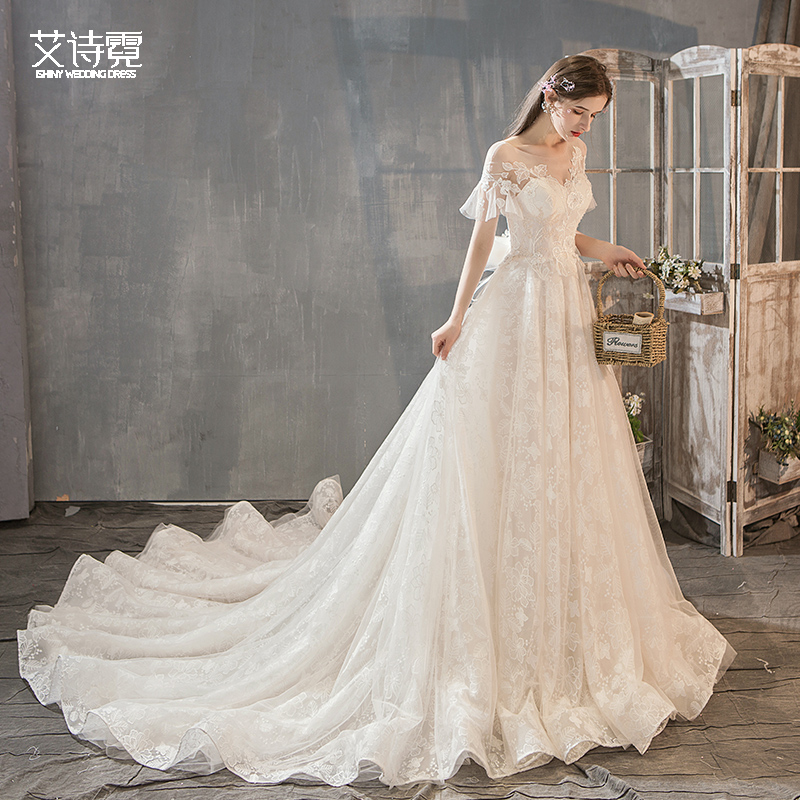 French light main wedding dress 202021 new forest bride trailing super fairy Hepburn small man simple temperament fantasy