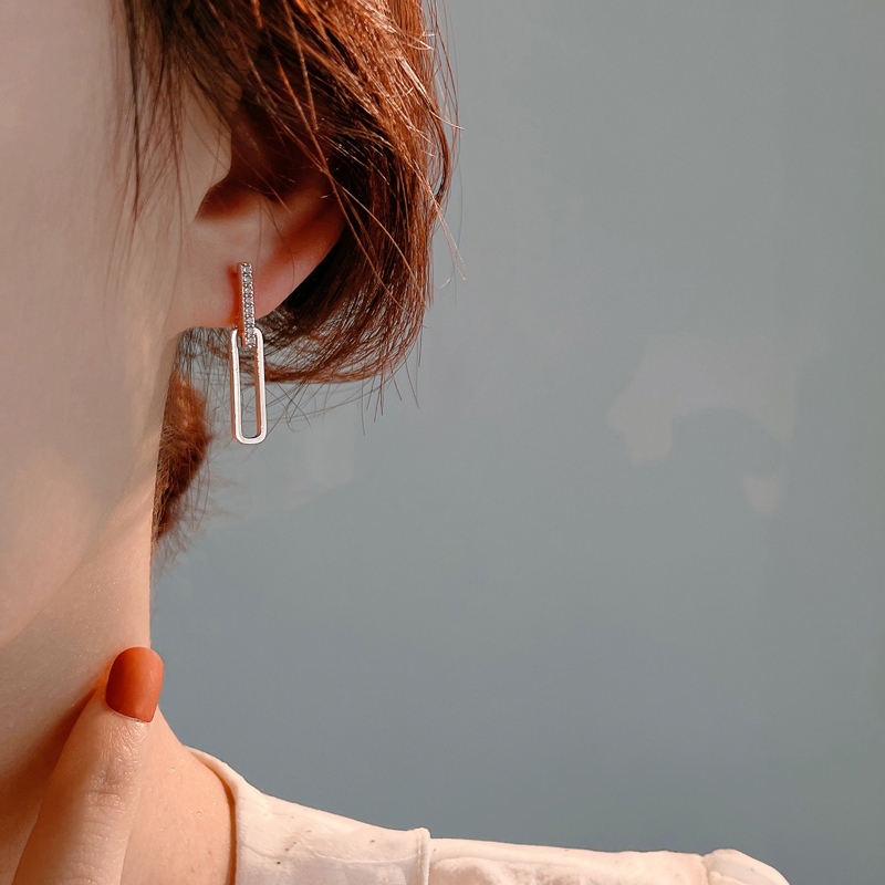 Rose gold ear pin 2022 new trendy personality row diamond sterling silver simple temperament small earlobe suitable earrings for women