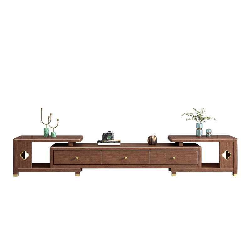 New Chinese-style solid wood TV cabinet walnut small apartment high-end cabinet modern retractable floor cabinet simple living room furniture