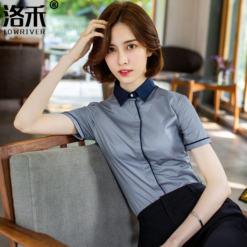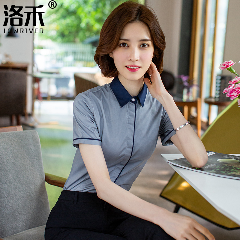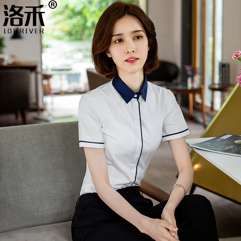 Luohe design sense white shirt women short sleeve work clothes summer temperament goddess fan interview overalls dress shirt