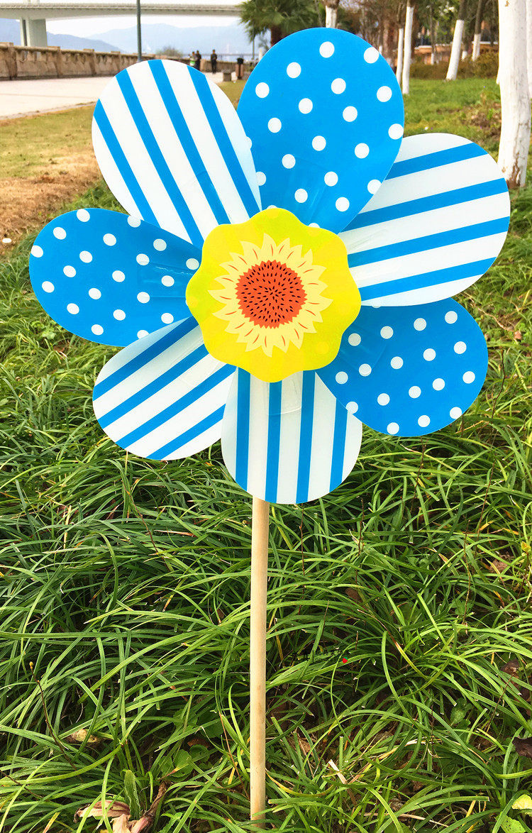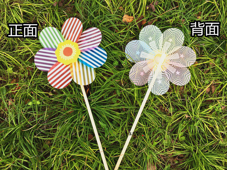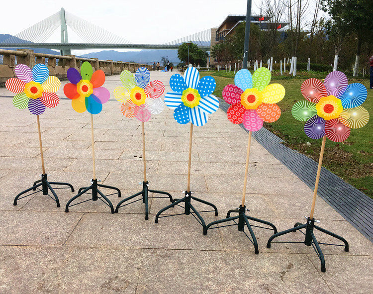 24 cm wooden pole printing windmill A 32 cm wooden pole seven-angle solid color a 32 cm wooden pole colorful windmill a small base