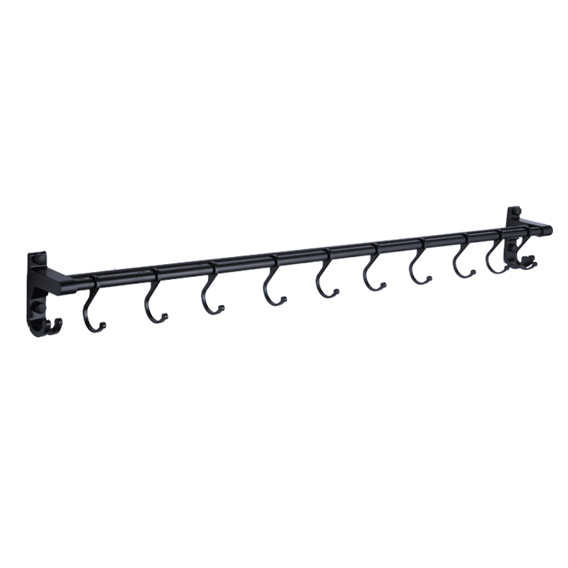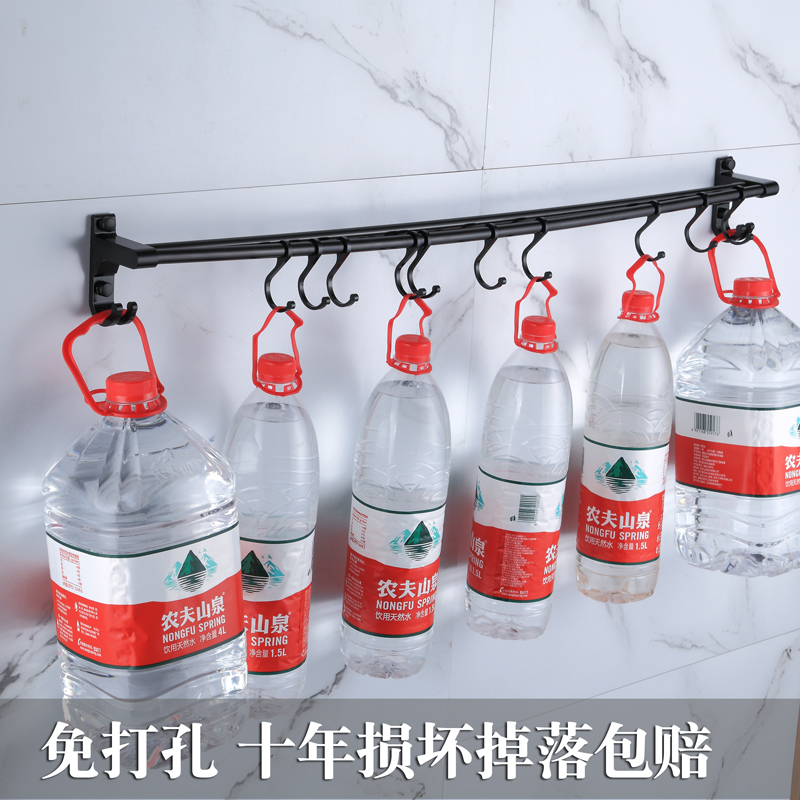 Free Punching Kitchen Hanging Rod Black Kitchen Knife Frame Home Wall-mounted Multifunction Active Hook and Hook Containing shelf