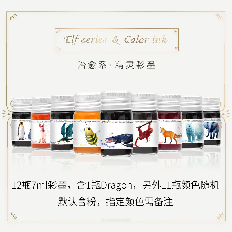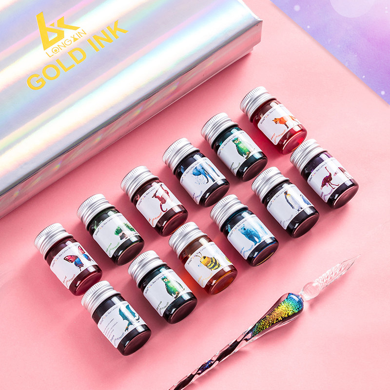 (Zhiyu department 12 colors)Elf color ink glass pen ink set dip pen Crystal diamond pen dip pen Student starry net red with the same pen gold powder practice color ink gift box
