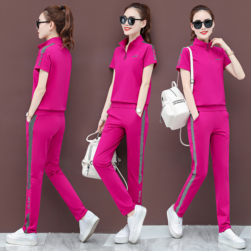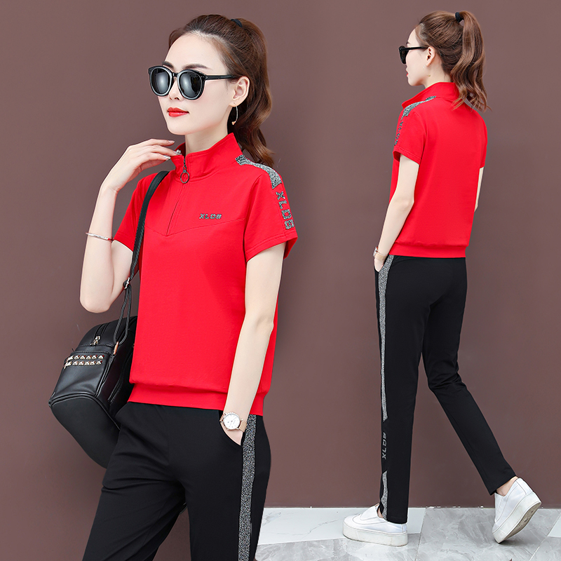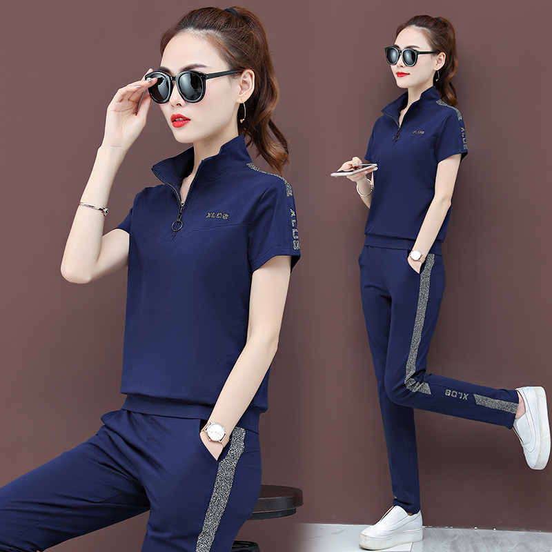 Short sleeve trousers summer 2023 new cotton two - piece fashion relaxed sports and leisure suit female summer gas