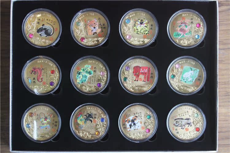 Huang Yongyu 12 Chinese Zodiac Family Guy Commemorative Medal 12 Chinese Zodiac Colored Gold Commemorative Coin Will Sell Gift Box Set