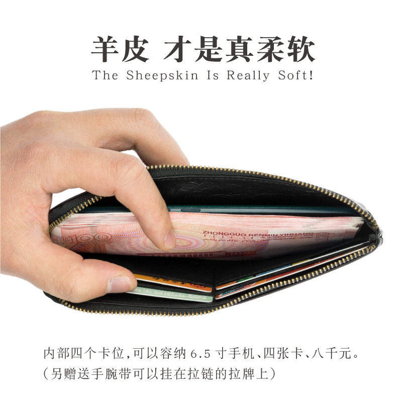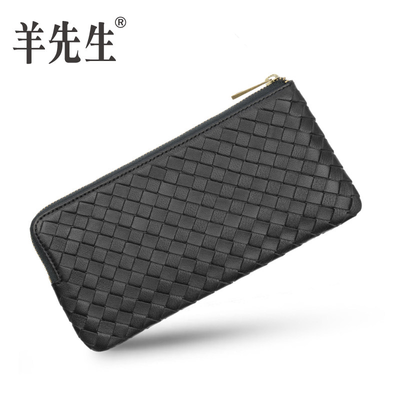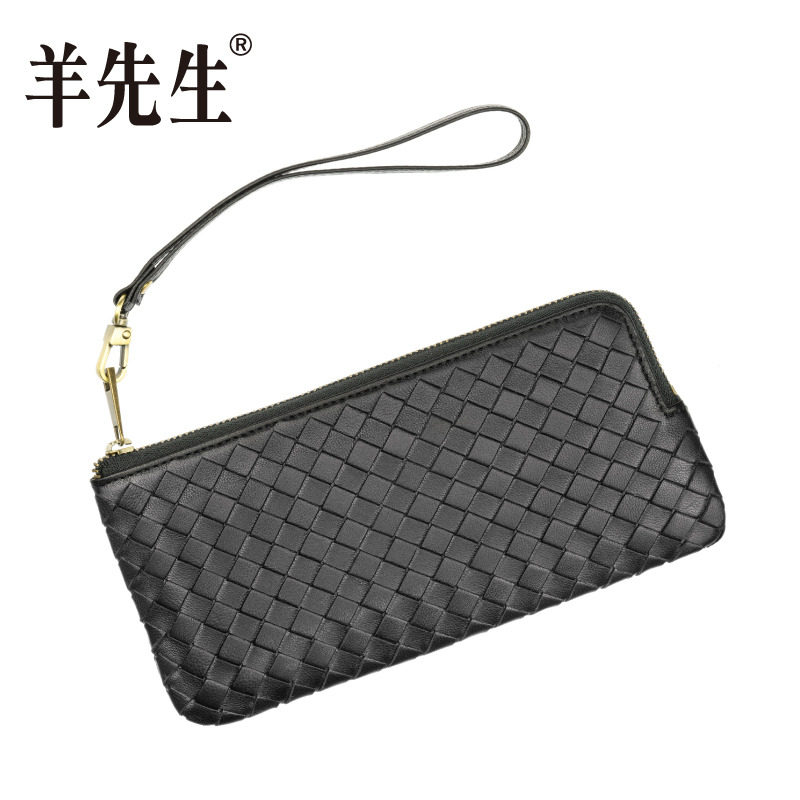 Mr Sheep woven mobile phone bag leather male long wallet Female sheepskin ultra-thin zipper handbag Hand-held soft coin purse small