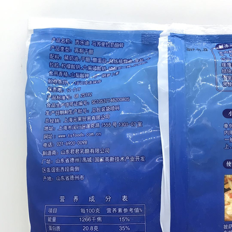Xile di mozzarella cheese shredded cheese brushed cheese 2KG*6 packaging commercial baking ingredients pizza material