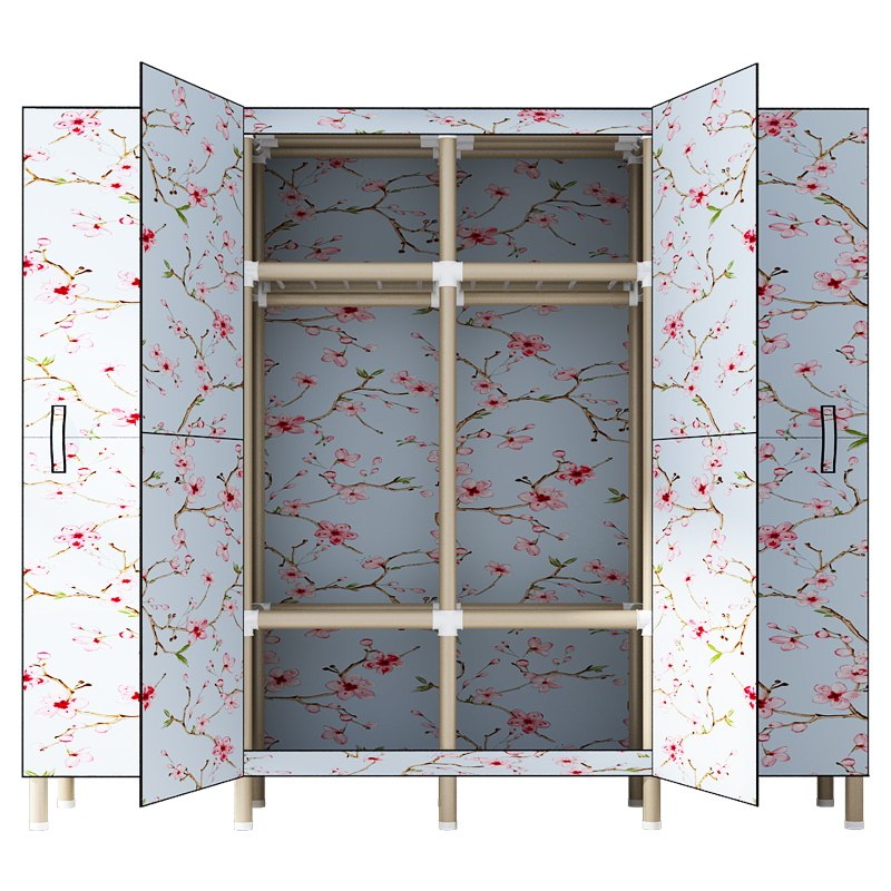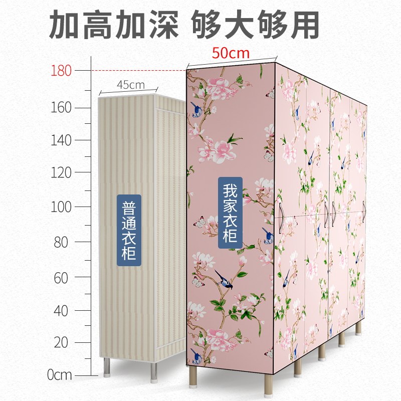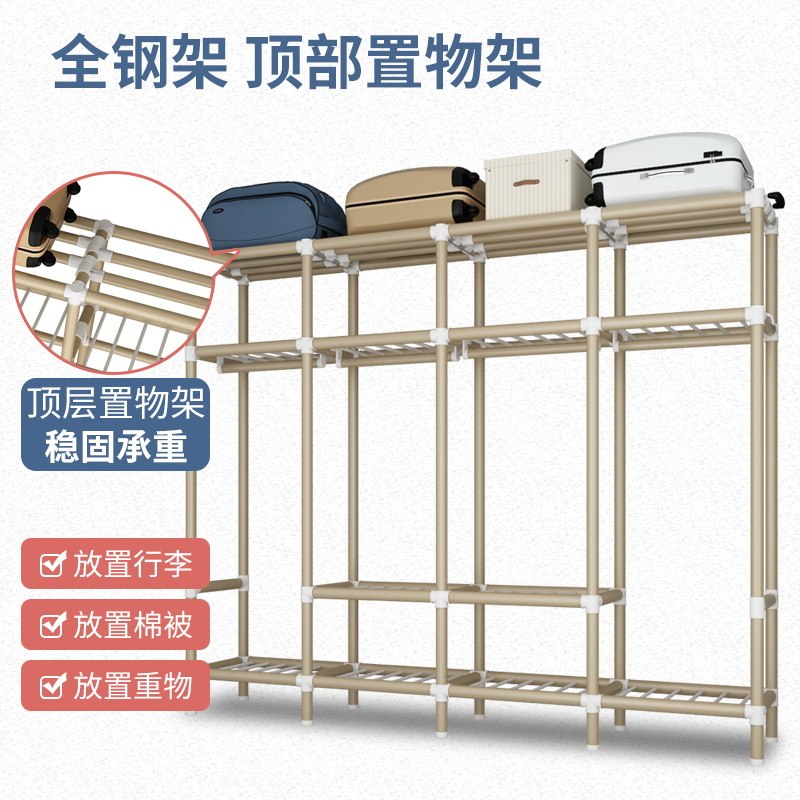 Cloth wardrobe all steel frame Oxford steel pipe reinforcement thickened double clothes storage cabinet home simple modern economy type