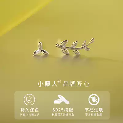 Small moose people 925 sprouting cute small leaves rattan leaves asymmetrical flowers sterling silver earrings female