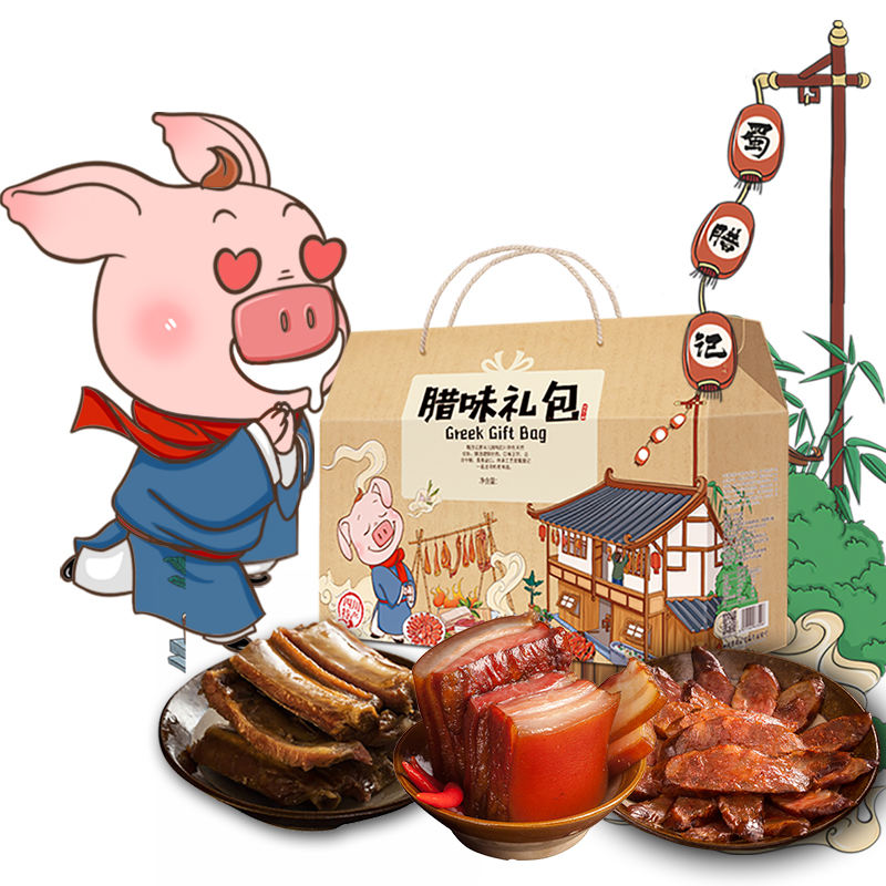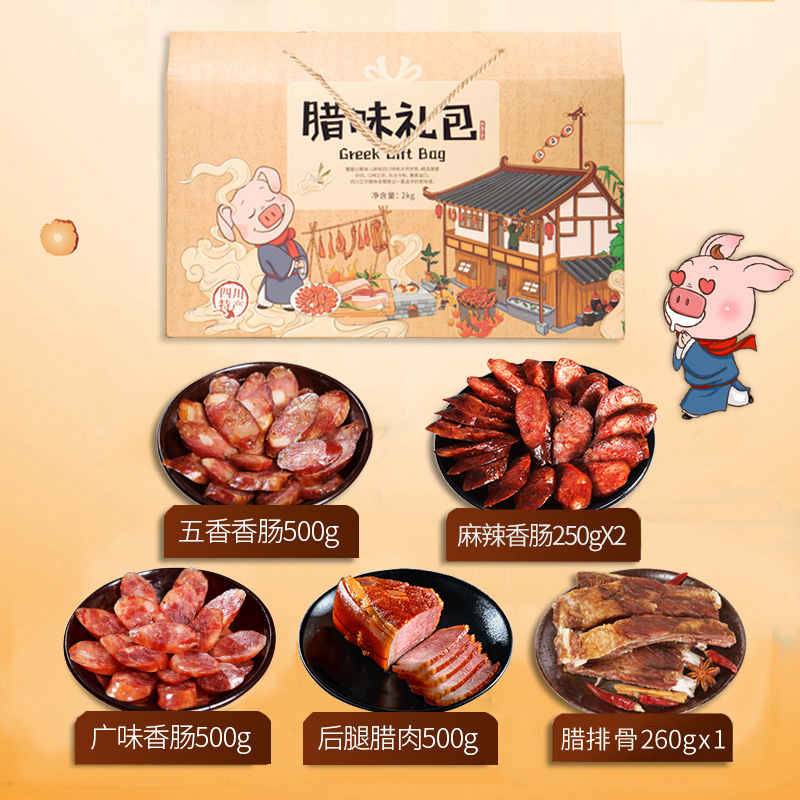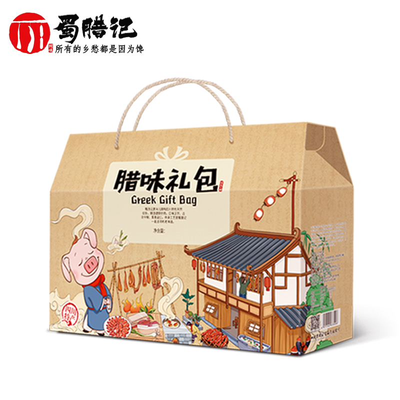 Shu Raremember Sichuan Special Courtesy Kit Farmhouse Handmade homemade Smoked cured meaty sausage with a large gift bag 6 pieces