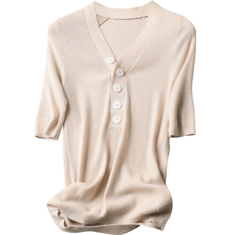 Day Ensemble Women Dress Elegance 100 Hitch Color Button Accessories V Collar Half Sleeve Beautiful nowool Lean Draw Sweaters Jersey Blouse