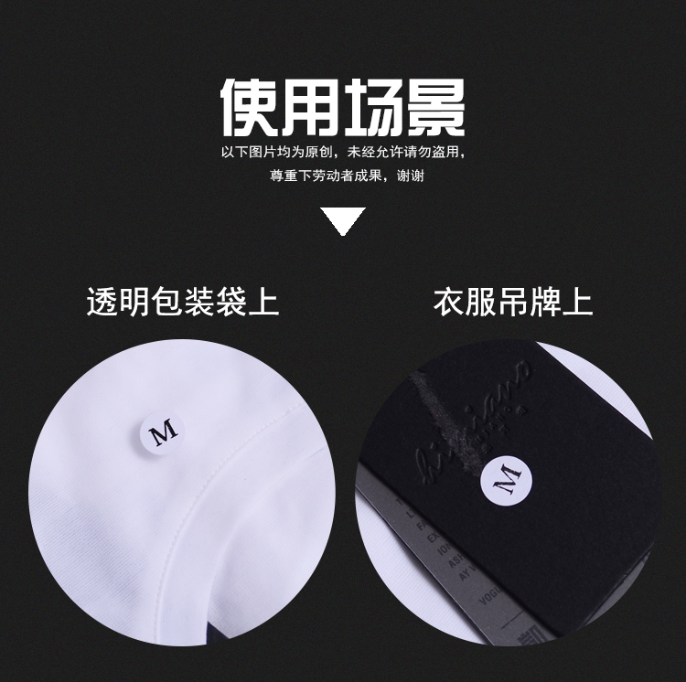 Yardage stickers Self-adhesive size stickers Clothing codes Clothing labels Round letter labels Uniform size Underwear labels numbers