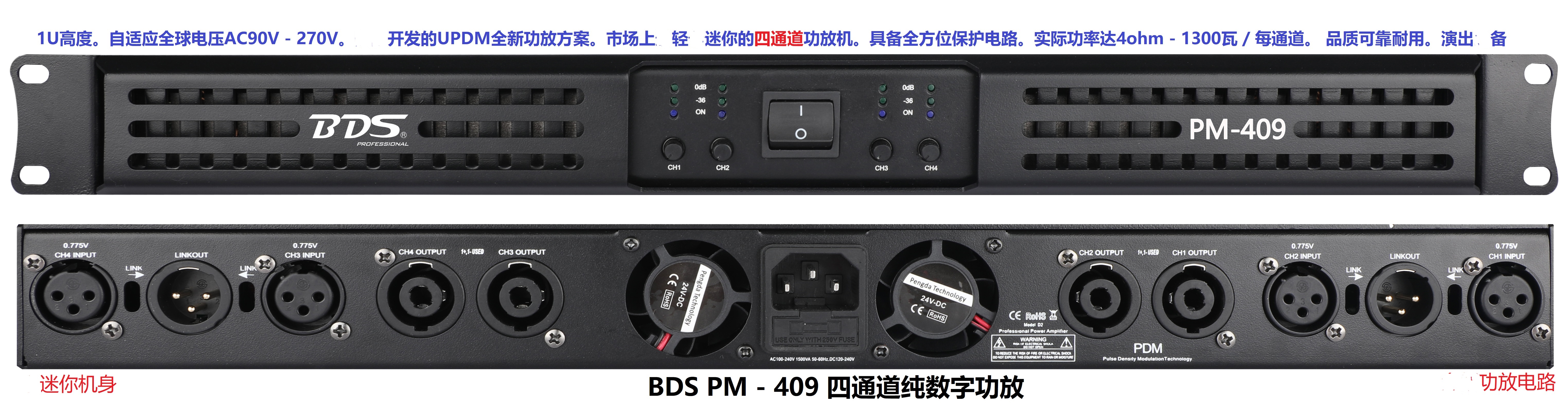 1U UPDM Digital amplifier 2-channel 4-channel Class D switching power supply Mixer Equalizer amplifier
