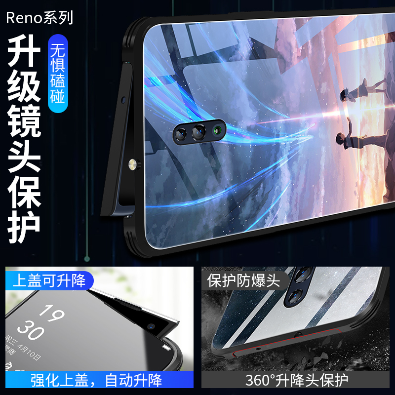Opporeno mobile phone case glass luminous reno ten 10 times zoom version creative oppo reno men's trendy brand all-inclusive protective case opporenoz mirror silicone soft super