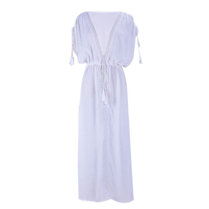 Seaside holiday cotton white sexy mid-length beach blouse bikini swimsuit coat sun protection clothing female long skirt