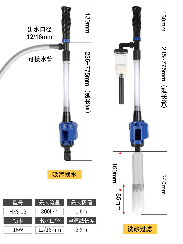 HXS-2 Electric Water Changer 2m Hose HXS-2 Electric Water Changer 6m Hose