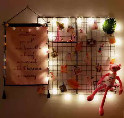 Wrought iron grid photo wall decoration Net red ins girl heart room layout dormitory wall clip shelf