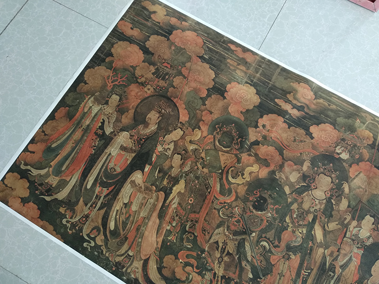 Rice paper micro-spray printing copy painting figure painting Fahai Temple mural Emperor Shi Brahma East Chinese painting banner decorative painting