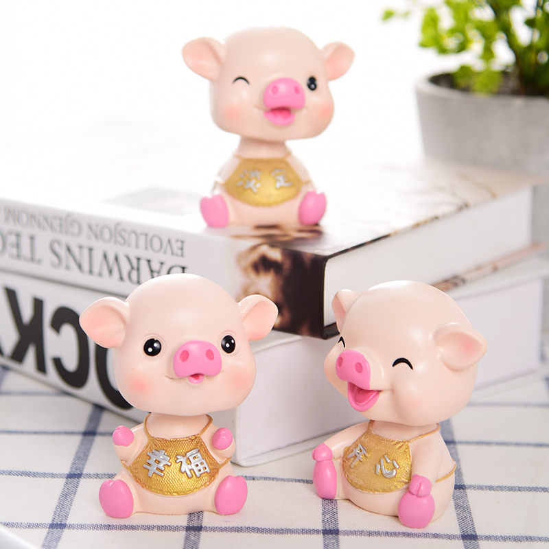 Creative net red car decoration cute cartoon 3d shaking head pig super cute pig car interior decoration center console doll
