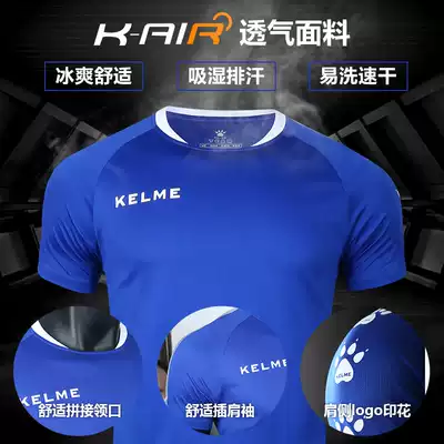 kelme Kalmei football suit male adult short sleeve t-shirt shirt top summer team jersey custom printed white blue