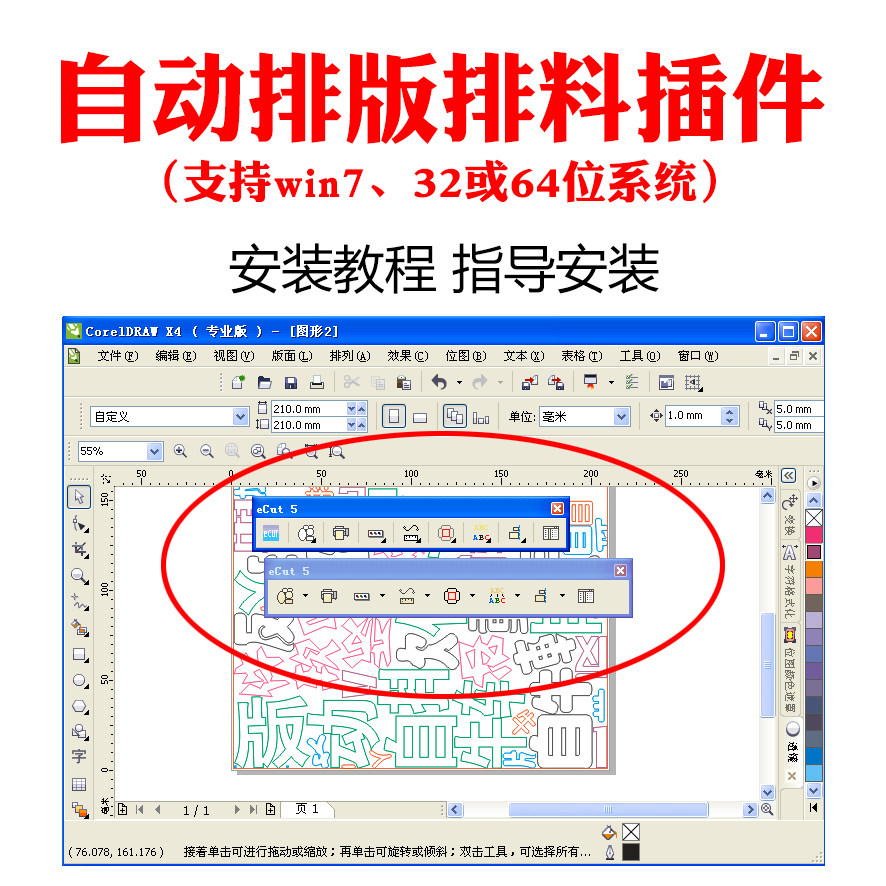 Jilin Changchun CDR automatic typesetting software engraving saving material Wentai cdr plug-in automatic row ecut5 plug-in