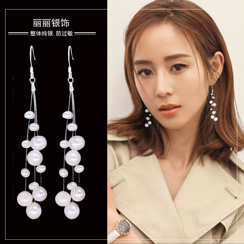 Natural pearl earrings women 2021 new fashion net red long version temperament super fairy sterling silver hypoallergenic high-grade sense earrings