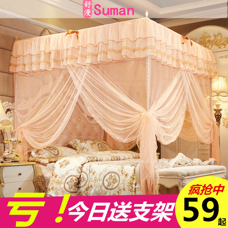 Household three-door floor-to-ceiling palace mosquito net bold encryption net red princess wind 1 35 m 1 5m1 8M dormitory