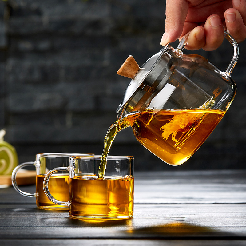 Glass teapot Heat-resistant high temperature thickened single pot household small black tea with tea water separation filter Tea maker set