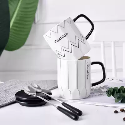 Creative simple trend mug couple Cup ins Nordic home personality ceramic coffee cup with lid spoon