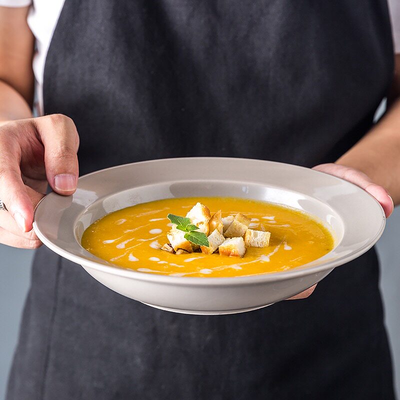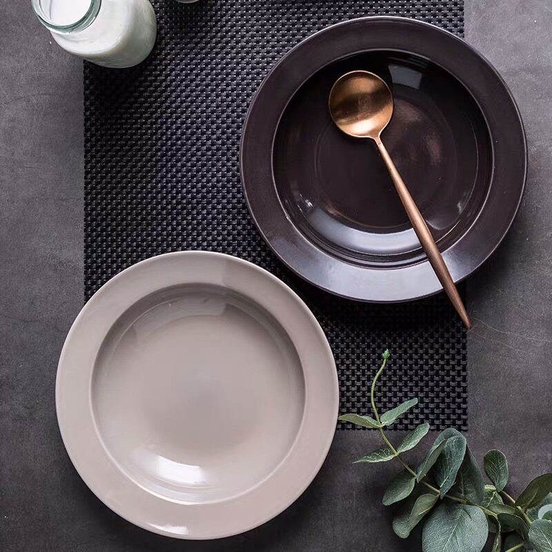 6 8-inch white pasta bowl 9 7-inch light coffee light soup plate 9 7-inch dark gray light soup plate 9 7-inch light gray light soup plate 11 2-inch light coffee large soup plate 12 5-inch light gray