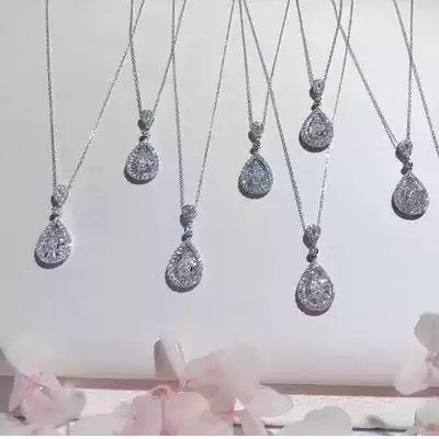 Junhuang Jewelry 18K Platinum Diamond Sort Square Pear-shaped Necklace Group Diamond Pendant Fashion Simple Women