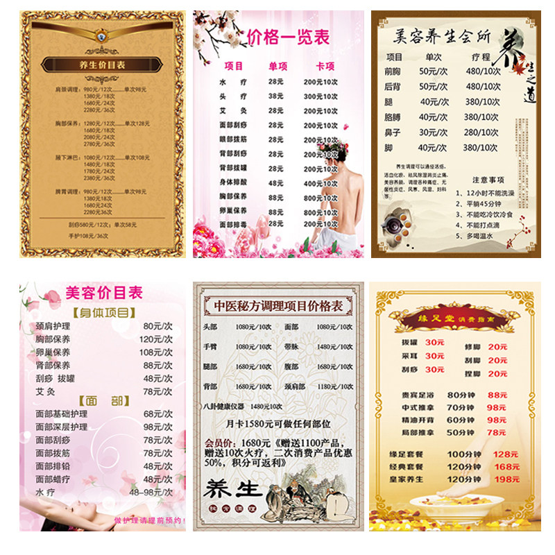 Health hall price list Price list Design and production of beauty salon project price list Beauty salon price list On the wall semi-permanent embroidery table price list Design and production of custom wall stickers