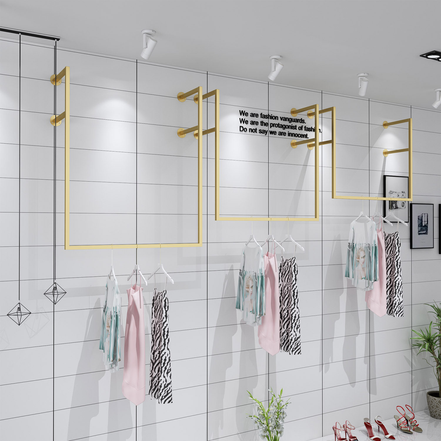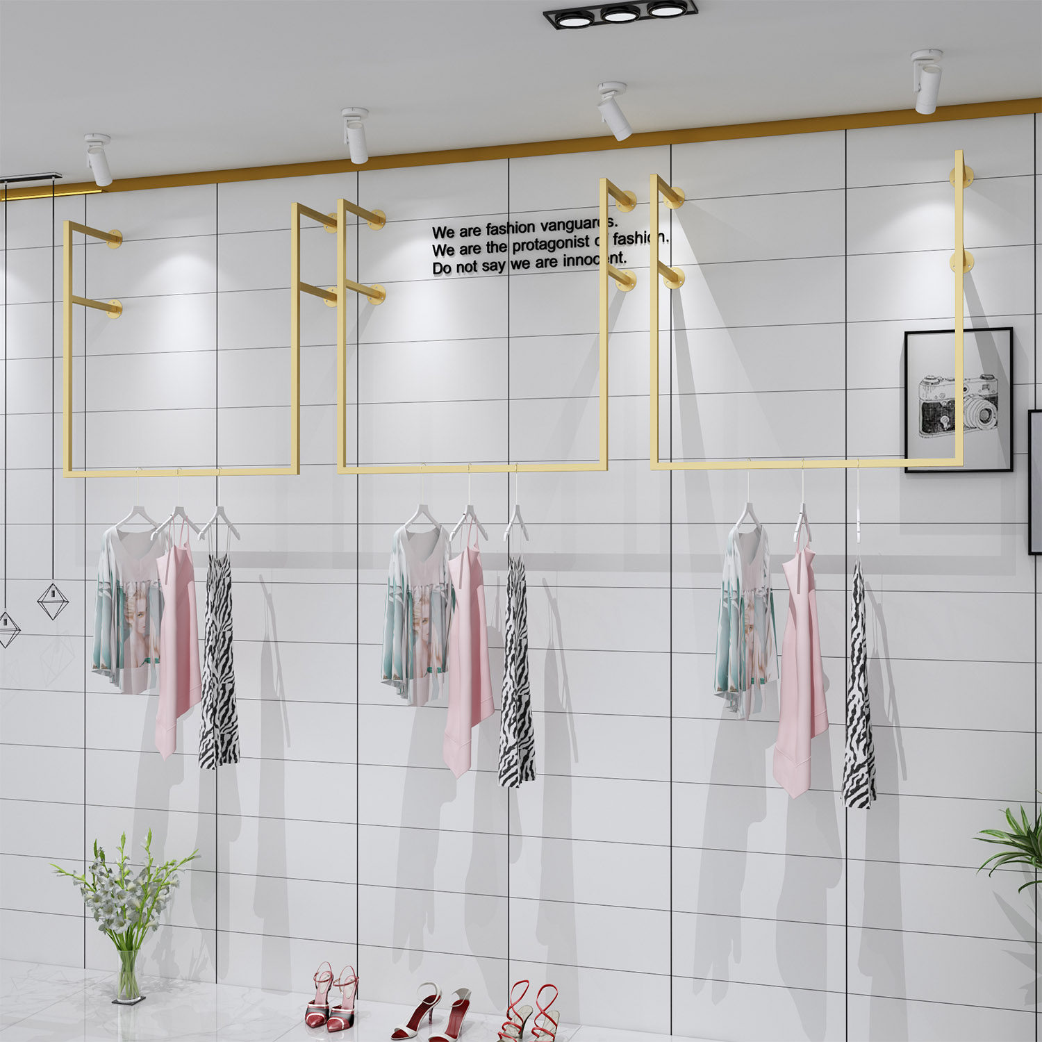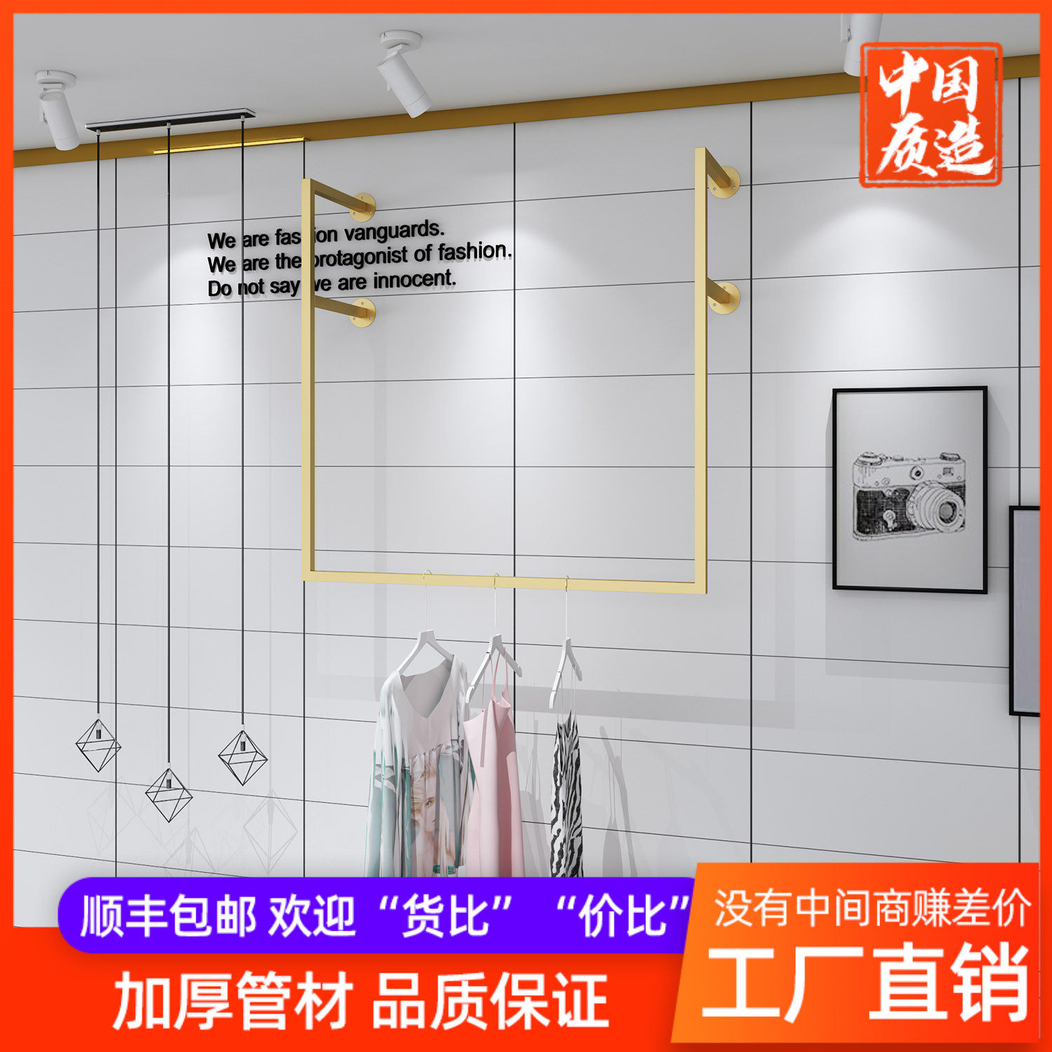Gold clothing store display rack wall-mounted clothing rack hanger clothes rack children's clothing women's clothing store shelves