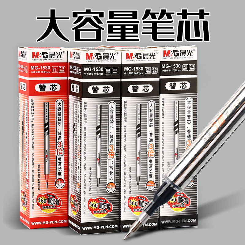Morning light great white shark midwicking pen core mg1530 student with black 0 5 gourd head 1500 thick tube large capacity refill black refill teacher special red tilt-core red medium pen refill
