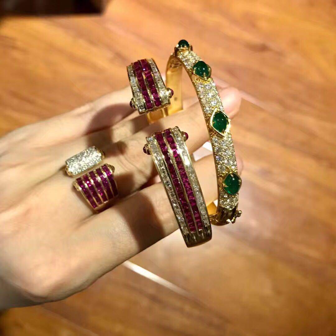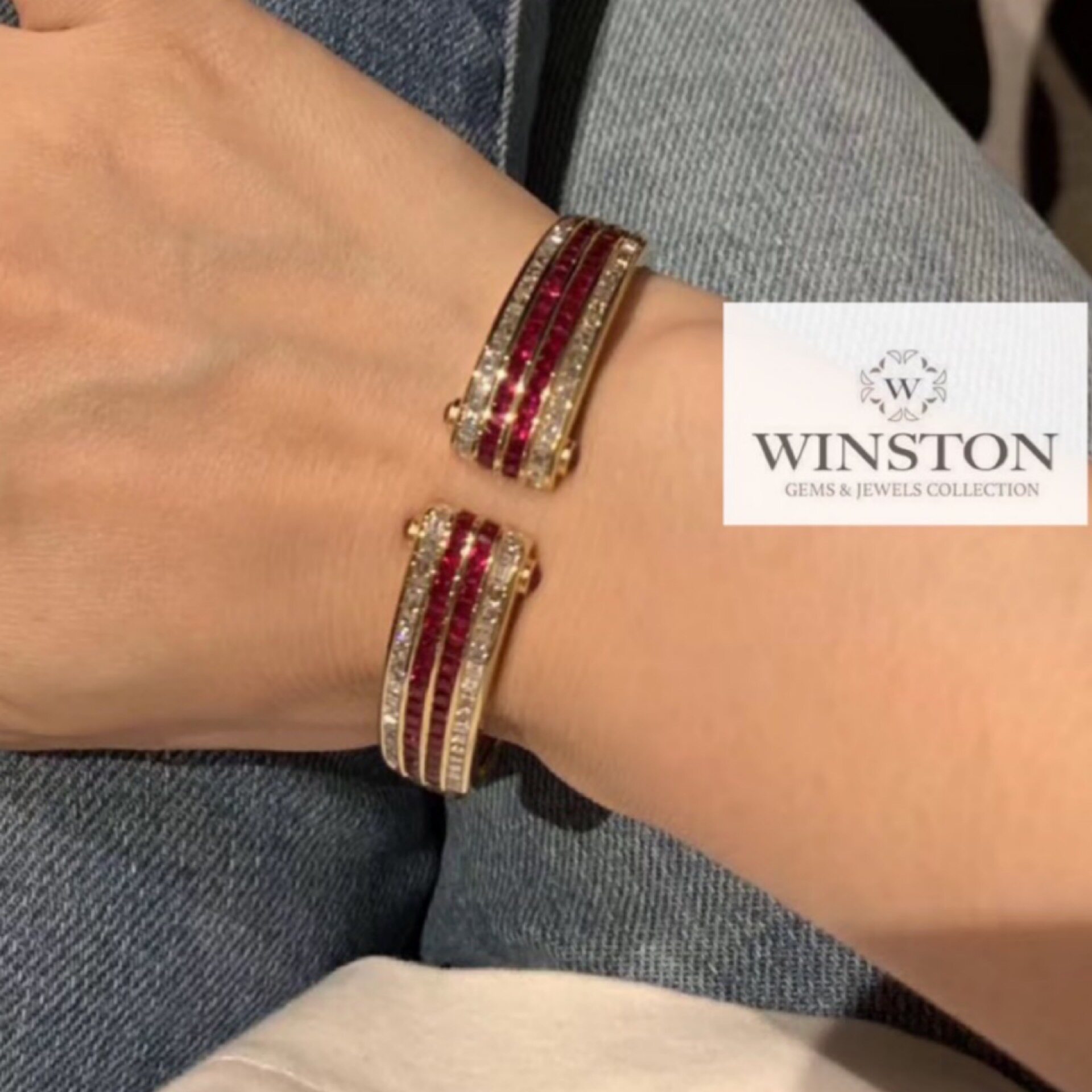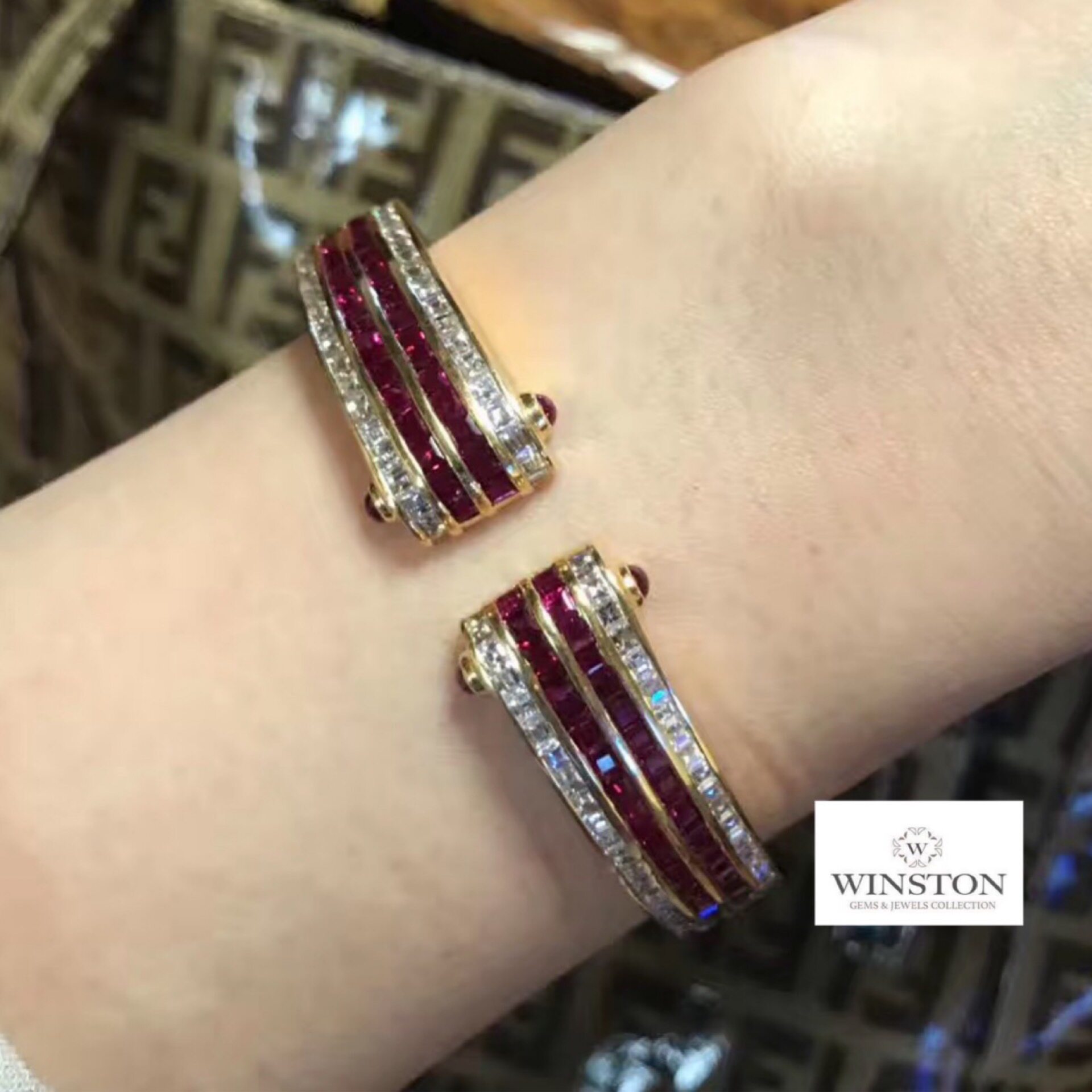 (Wistine Jewels) High Set Atmosphere Seamless Inlaid Dove Blood Red Ruby Diamond Square 18k Gold Bracelet