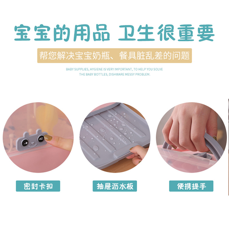Baby cutlery bottle containing box storage box drying rack drain rack bowls chopsticks baby bottle-bottle case double dust