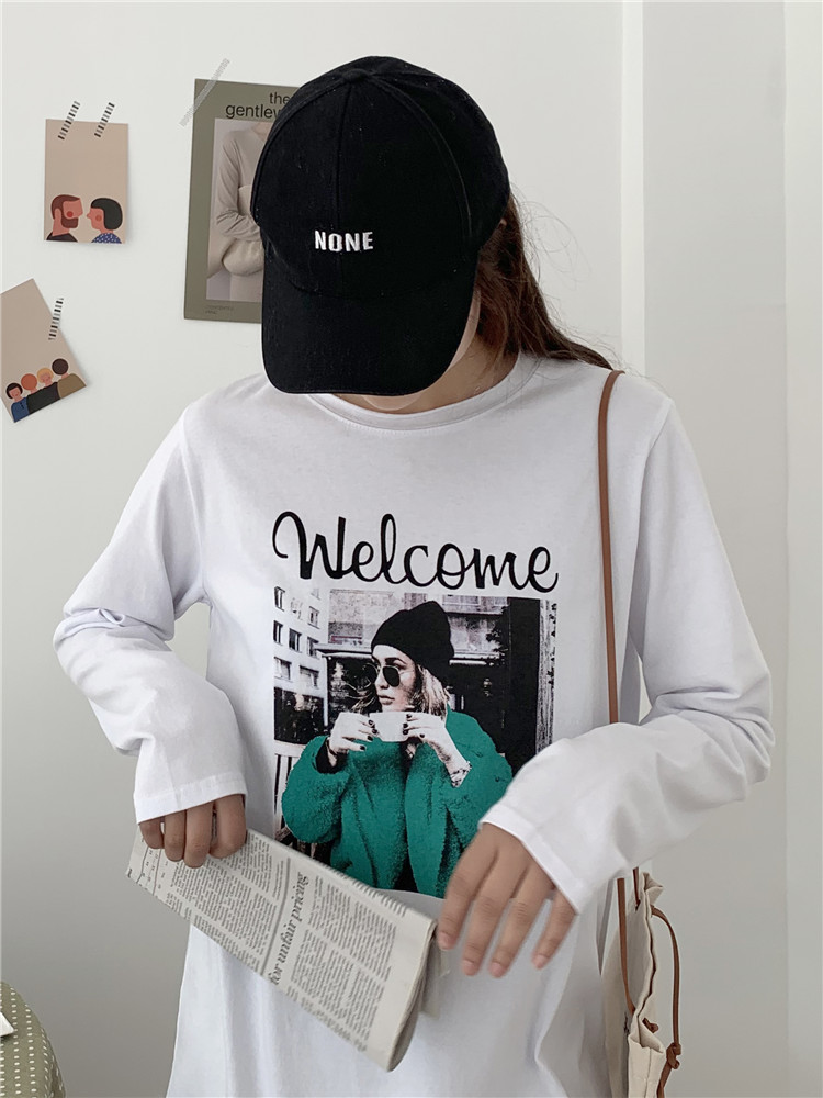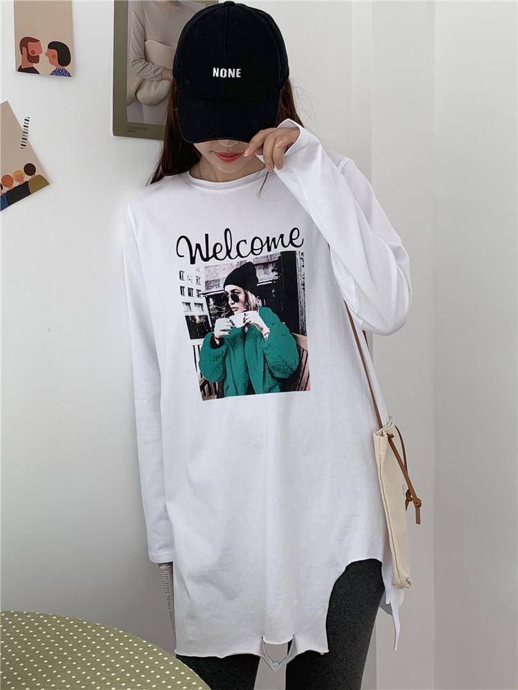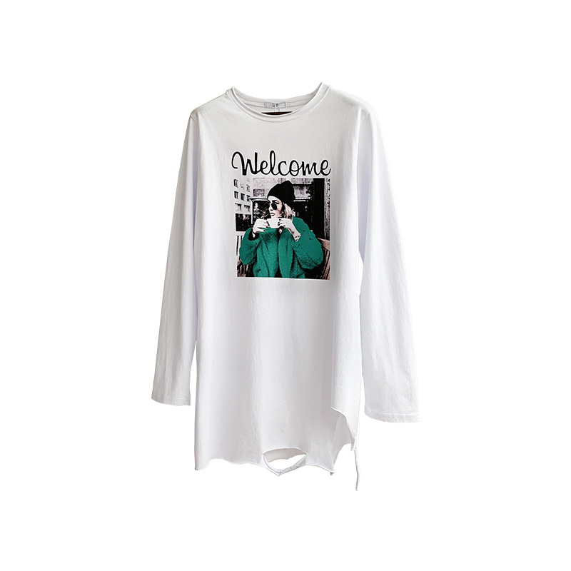 Foreign pie early autumn new pure cotton breaking hole white long sleeve T-shirt female medium long version of undershirt blouses net red ins