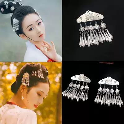 Ancient style photo flower Miao silver tassel hairclip Hanfu hairpin daily hair accessories headgear girl step gift