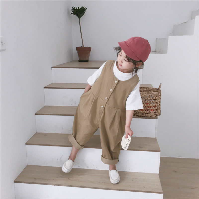 Retro tone Korean edition men's and women's soft sleeveless jumpsuit Children's loose and comfortable baby bag pants 316