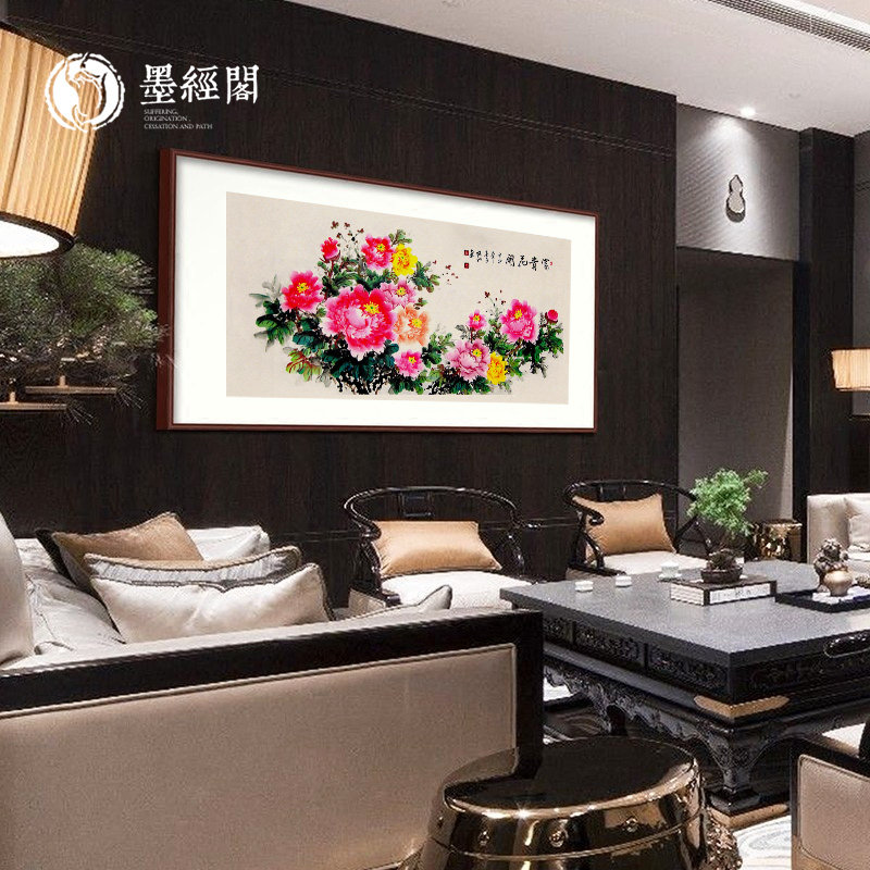 Sofa background wall decorated drawing room fresco modern atmosphere hanging painting simple Chinese painting Chinese flower bloom rich peony