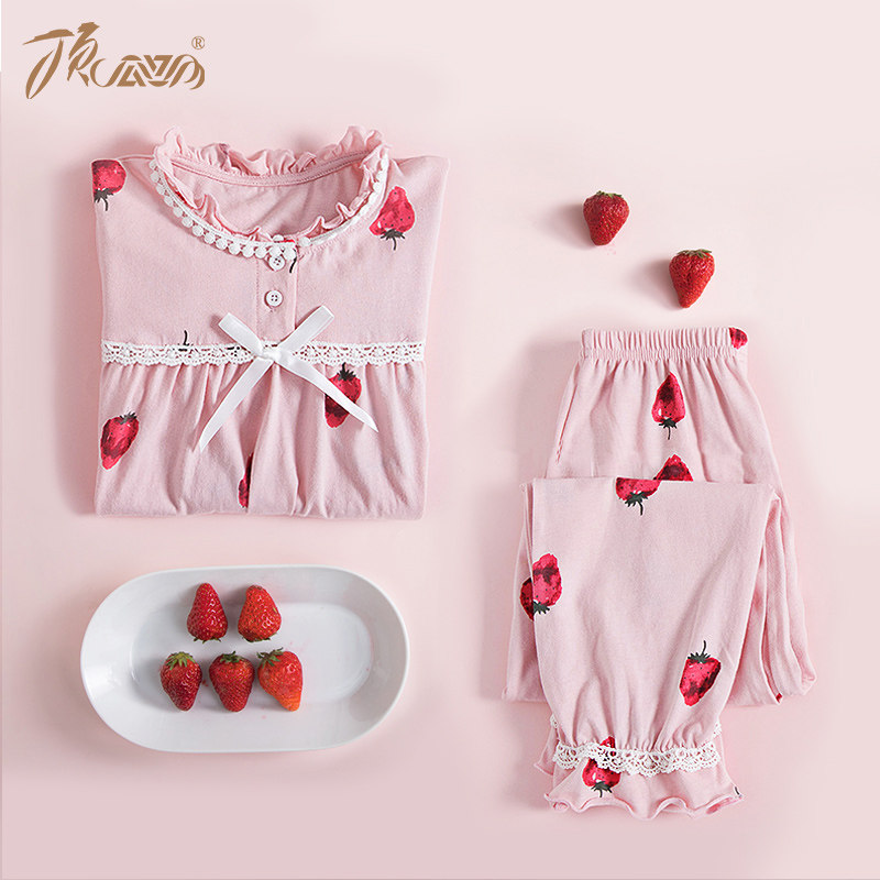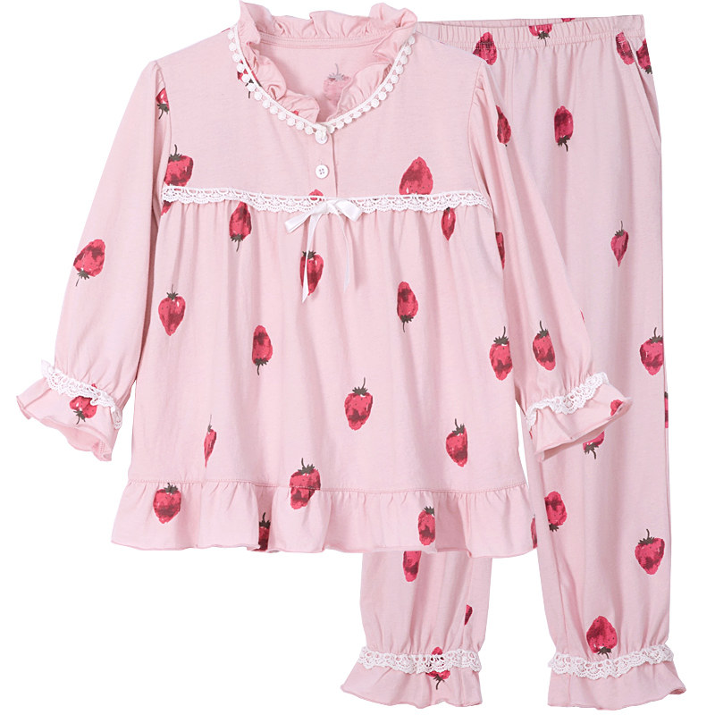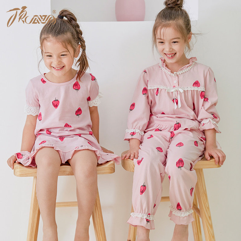 Top Melon Melon Children Strawberry Sleeping Dressing Summer Thin Girl Princess Pure Cotton Home Suit CUHK Tong Air Conditioning Suit