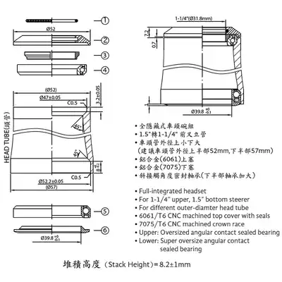 speedx Beast road bike modified head bowl set 47 52 52 Built-in bearing wrist set OD2 standard cone head bowl
