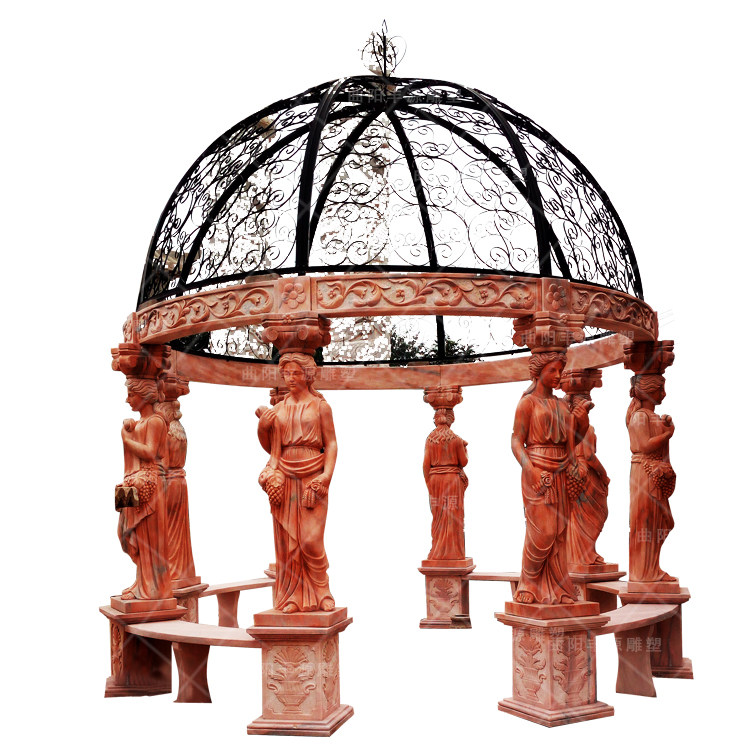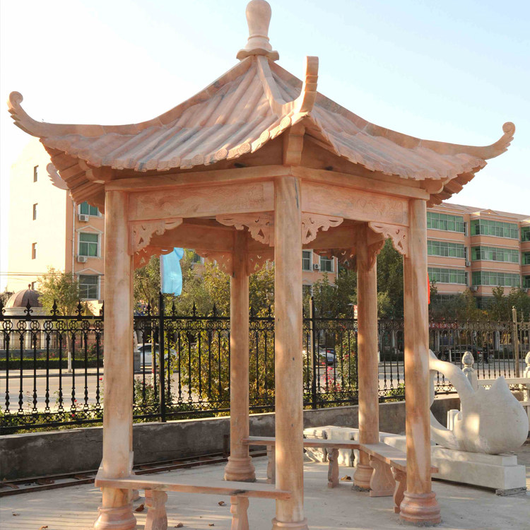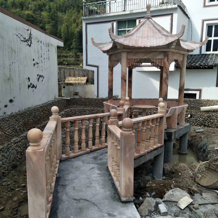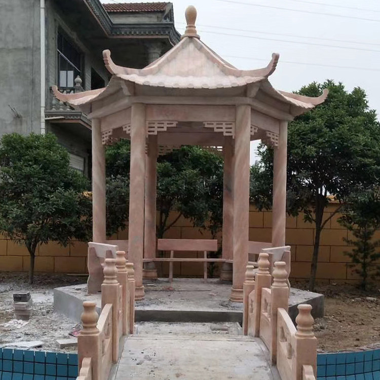 Stone Sculpture Pavilion Natural Marble Late Xia Red Hexagonal Pavilion Sub promenade outdoor landscaped rest Bench Pavilions pavilions