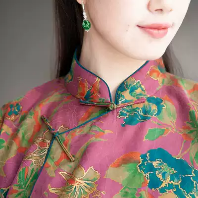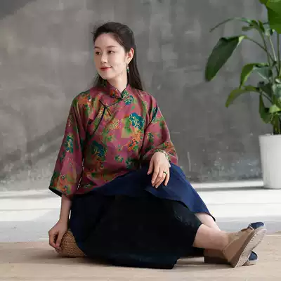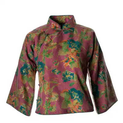 Thank you (flowers Jing) mo shang hua kai original silk xiang yun sha Chinese style plate buttons top female Hanfu Tang suit
