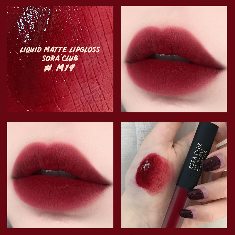 sora club Shaola misty velvet matte lip glaze female matte lipstick student lip gloss m19 big cherry lip gloss