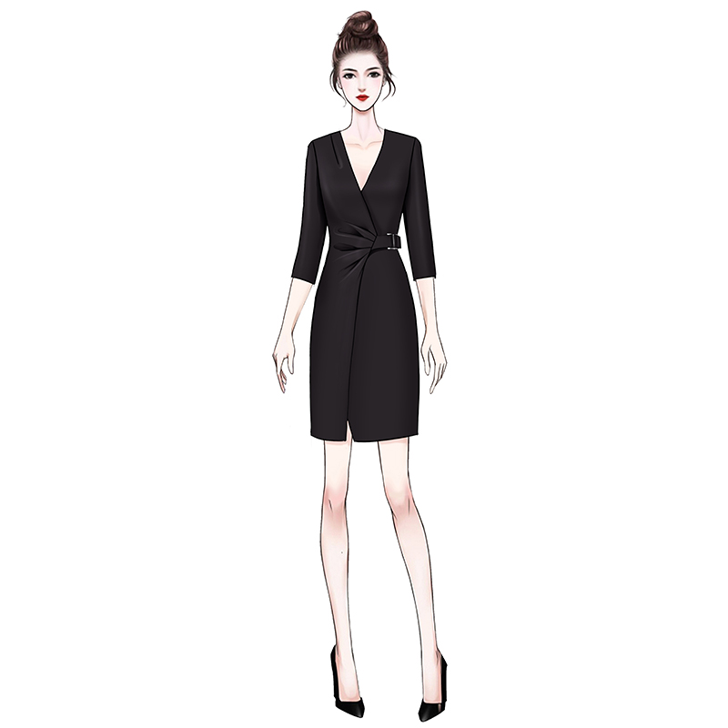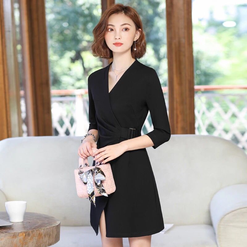 Career dress female spring and autumn black seven-minute sleeves with high-end fame style commuter