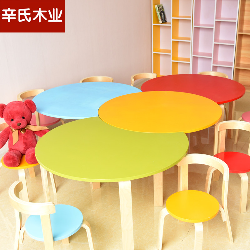 Kindergarten Solid Wood Class Table And Chairs Round Table Crescent Color Children Early Reference Book Guide Training Special Combined Painting Table