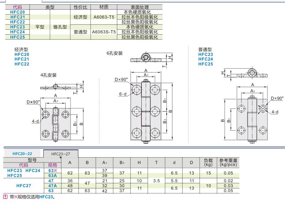 HFC23 24 25-63 63A HFC27-47 47A 63 aluminum alloy butterfly hinge plane hinge